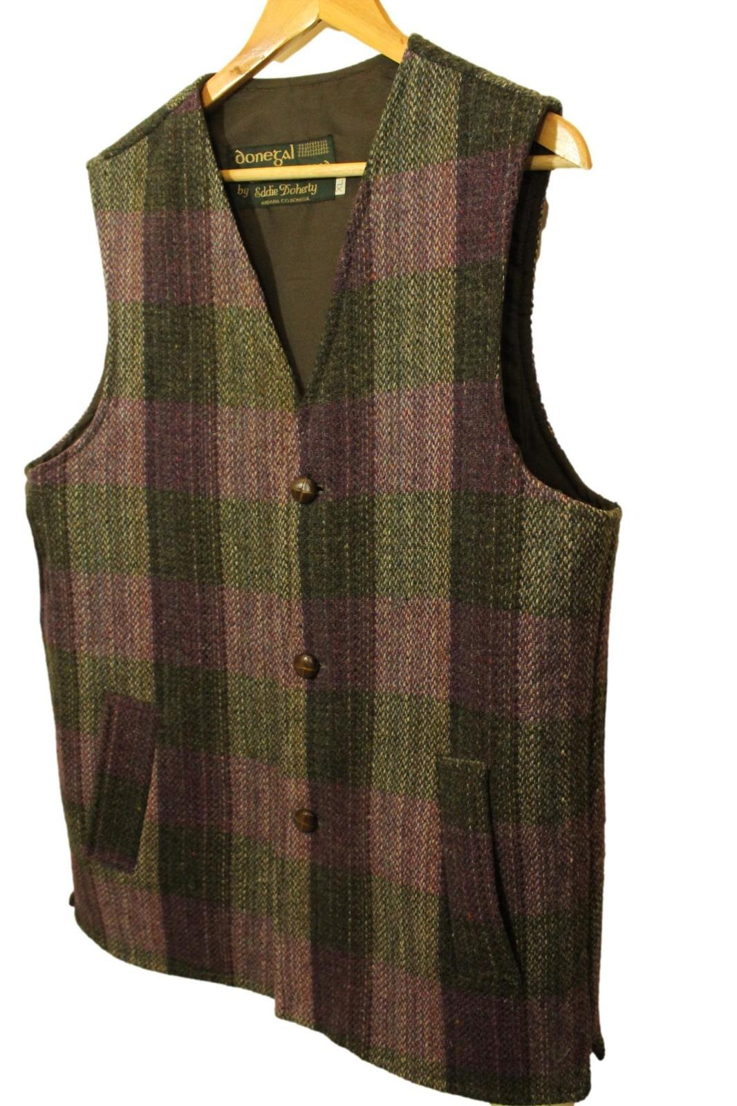 Donegal Hand Woven Eddie Doherty XL 44" Irish Purple/Green Tweed Waistcoat Vest
